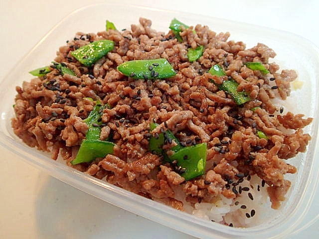 お弁当 合挽ミンチとスナップエンドウの丼 レシピ 作り方 By ぷ みぃまま 楽天レシピ