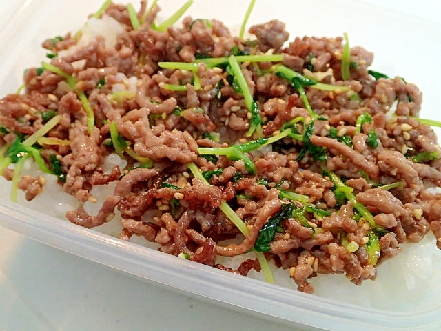お弁当 合挽きミンチと豆苗のソテー丼 レシピ 作り方 By ぷ みぃまま 楽天レシピ